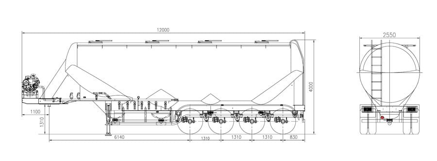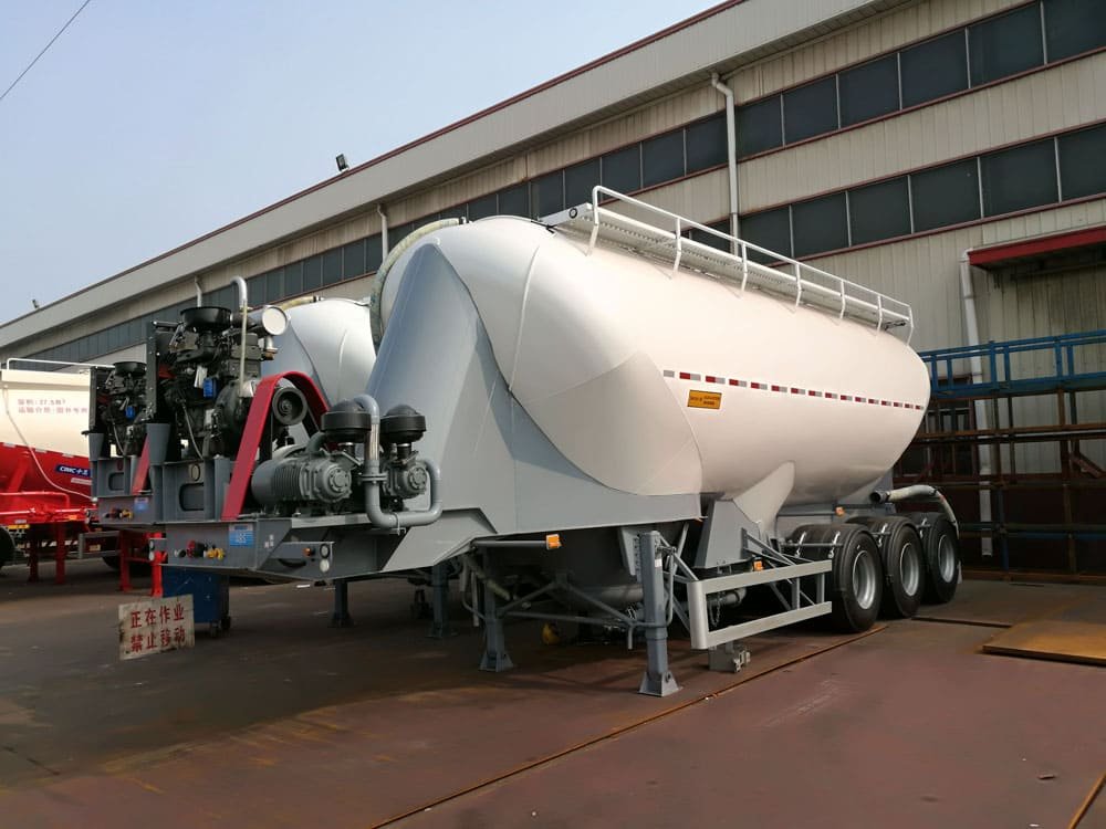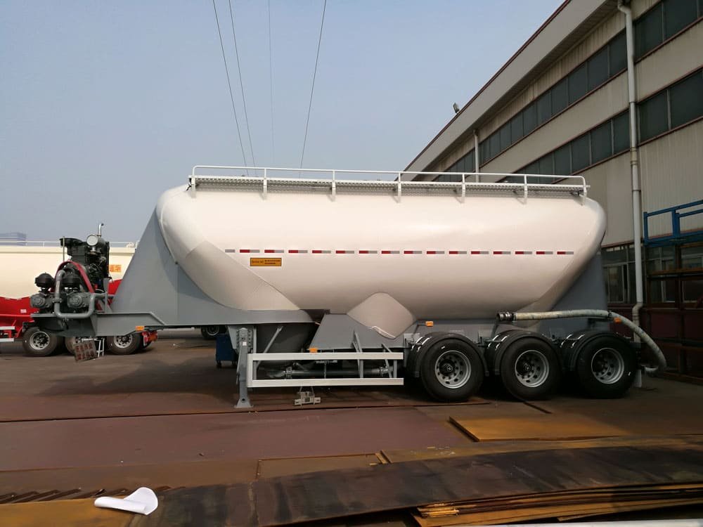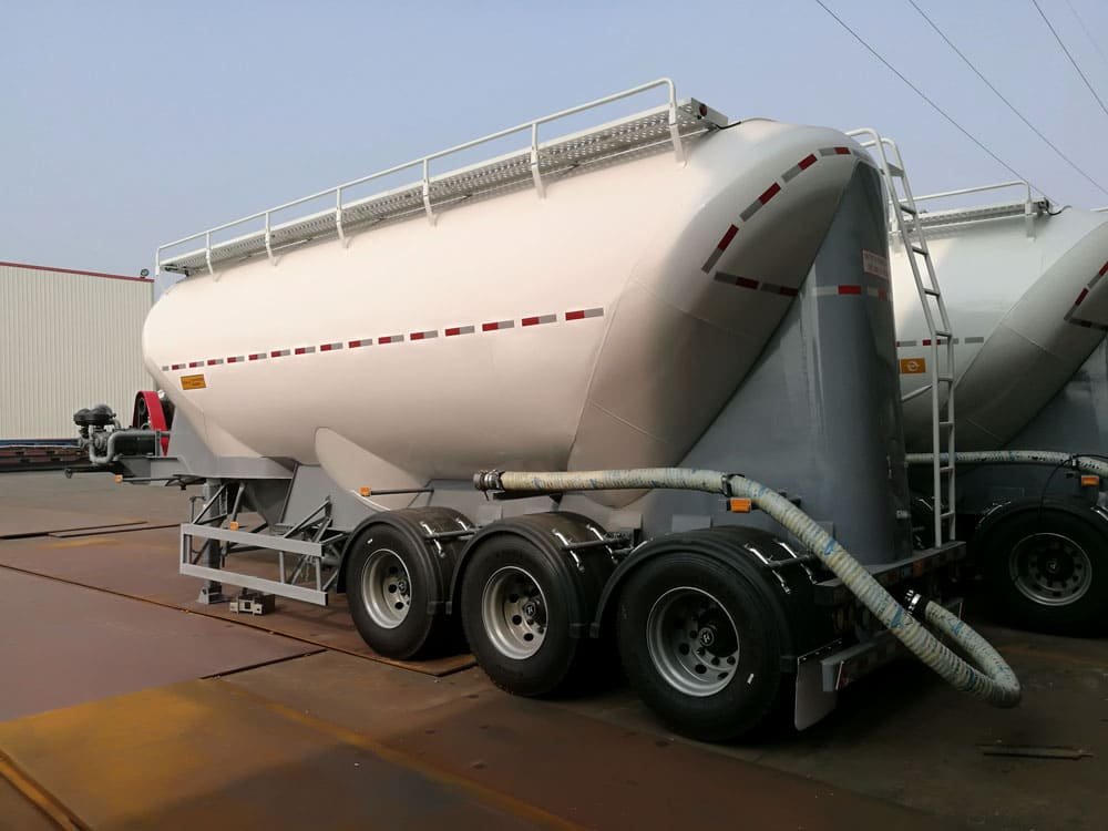 HIPO’s W-shaped bulk Cement Tank Trailer is designed to carry large amounts of cement with excellent stability. Its W-shaped design allows for better flow during unloading, with the sloped bottom helping the cement move smoothly to the discharge point. This design reduces leftover material, making each load more efficient. This trailer offers high capacity and dependability, perfect for industries transporting large amounts of cement.